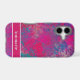 Modern pink abstract phone case design with powerful coloured shapes in an explosive pattern. This styles features fluid art elements and layered shapes in varying shades like blue, magenta, and pink. With room at the bottom to personalise with your name.
