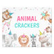 Fun and colorful, calling all party animals themed birthday party sign that can be used for various ages. This party animals birthday party sign poster features eight cute jungle animals, colorful party hats, colorful dots and stars.
