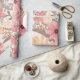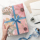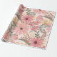 Pink Sage Green Floral Leaves Watercolor Pattern Wrapping Paper