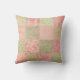 Custom throw pillow in pink and sage green floral quilted squares pattern.