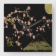 Pink Sakura Gold Black Japanese Screen Square Wall Clock