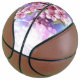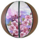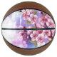 Artistically drawn, branch of pink, cherry blossoms on picturesque, textured background, painted over with white, pink and blue paint. Pink Sakura