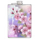 Pink Sakura on Painting Background Hip Flask