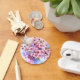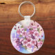 Artistically drawn, branch of pink, cherry blossoms on picturesque, textured background, painted over with white, pink and blue paint. Pink Sakura