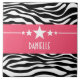 Trendy and modern Sassy Star Zebra Tile featuring a chic black and white zebra print background and a bold magenta border adorned with a fun star motif. This girly design may be customised with the personalised text of your choosing. Click "Customise It" to find more personalisation options.