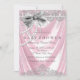 Elegant pink and grey baby girl shower invitation with pretty pink satin background. You can easily customise this beautiful pink and silver baby shower invitation for your event by adding your details in the font style and colour, and wording of your choice. This is a printed design with no real jewels, pearls, glitter, etc.