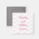 Fun and contemporary, Save the date on a pink quilted crisscross pattern, and a placeholder for the bride's and groom's name and wedding date, printed on magnets. Browse matching product sampling: