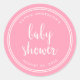 Pink Script and White Stripes Baby Shower Classic Round Sticker