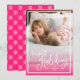 Pink Script Happiest Holidays Holiday Photo card featuring the word "Happiest Holidays" in a fun brush script and white border against a partly transparent pink gradient. Makes a great card for the Christmas / Winter holidays. Card includes a pink snowflakes pattern backside. Check out other holiday items here https://www.zazzle.com/collections/holiday_christmas_new_year_cards-119015800351034065?rf=238364477188679314