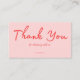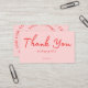 The front features a bold red script "Thank You for shopping with us" over a soft pink background with your website URL — feminine, trendy, and eye-catching. The back delivers your appreciation message in a stunning circular typographic layout with "Made With Love" at the center — unique, artistic, and unforgettable.