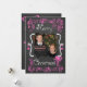 A chalkboard look background with beautiful scrolls and stars of pink and white text that reads "Merry Christmas" on front and "May all your days be merry & bright" on back. This beautiful customised holiday Christmas photo card has several star ornaments, and a bird in a nest design and areas you can easily add your names, the current year, and photo!