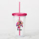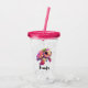 Acrylic tumbler with a cute illustration of a sea turtle. Pink body and shell with a floral topping. Looks happy and adorable.