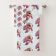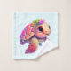 Towel set with a cute illustration of a sea turtle. Pink body and shell with a floral topping. Looks happy and adorable.