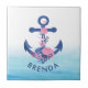 Pink seashells and corals and navy-blue nautical boat anchor illustration.