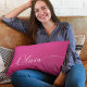 Pink Shimmer White Elegant Calligraphy Script Name Lumbar Cushion