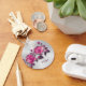 This elegant floral keychain features delicate hot pink blossoms with a shadow on a silver background