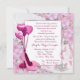 Beautiful pink flowers, pink high heel shoes, pink balloons and diamond tiara photo Quinceanera invitations. This elegant pink Quinceanera invitation is easily customised for your event with your photo, font style, wording, etc.