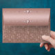 A glittery, shiny design fit for a Showgirl's correspondence, featuring a glam pink gradient, champagne pink glitter, pink diamond address borders, and a whisper pink velvet tufted print liner.