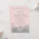 An elegant pink and silver Bat Mitzvah invitation featuring silver glitter confetti at the top and silver glam bling at the bottom with a silver glitter Star of David.