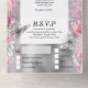 A beautiful all-in-one invitation featuring a faux metallic shimmer silver background on which faux silver butterflies appear. They are framed by blush and pastel pink and white roses; diamante strands and faux sparkling stars. There are templates for your personalised wording and the bottom third has a tear off response card with personalised rsvp address for your guests to complete. These are ideal for beach; Hawaiian; coastal and tropical wedding, engagement, anniversary and birthday parties.