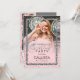 The elegant, glamourous, and modern photo birthday party invitation is perfect for the contemporary and stylish event. It features a faux printed silver sparkly glitter sprinkled confetti border on top of a blush pink ombre and feature photograph background. The back displays the same glitter but sprinkled across a blush pink background with four more photos. This chic, luxury, and unique design will be a hit with all of your guests!