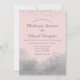 An elegant pink and silver wedding invitation featuring silver confetti dust at the top and blingy silver accent at the bottom.
