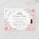 Pink silver and white Quinceanera reception details enclosure cards. Features brunette girl in ball gown dress, script font, silver butterflies, blush pink roses and tiara. Perfect for an elegant princess style glam celebration. Personalize with your own details.