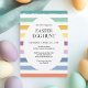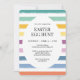 Pink Simple Colourful Cute Easter Egg Hunt Party Invitation features a white egg-shaped element at the centre, set against a vibrant striped background in cheerful Easter colours like yellow, green, pink, and purple. The front showcases a big "EASTER EGG HUNT" text in black, written in a modern and elegant font. The backside is a solid purple, adding a bright and festive touch. Perfect for an Easter egg hunt party for kids, this invitation is fully customisable to suit your event details. Need more help? Click the "Message" button below. We are happy to help with custom orders.
