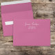 Enhance your correspondence with our return address, a simple pink envelope featuring a minimalist solid-colour design. This 5x7 A7 size envelope is adorned with a custom back flap for personalisation and classic bold typography that stands out. The minimal modern style blends seamlessly with fun, whimsical, bright elements, accented by calligraphy script and handwritten lettering. Perfect for any occasion, its minimal design exudes timeless elegance with a playful touch.