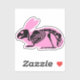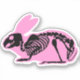 A pink rabbit with a black skeleton creates a spooky cute animal design. It's shown here on a kiss-cut sticker available in several sizes. Use to decorate notebooks, scrapbooks, phone cases, laptops, and more. Fun for anyone that likes a spooky touch!