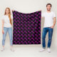 Black fleece blanket with hot pink cartoon skull and crossbones pattern.