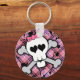 Pink Skull and Crossbones with Hearts and Bow Key Ring