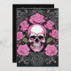 Pink Skull and Roses Gothic Elegance Wedding Invitation
