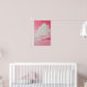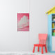 Painting of a pink sky with white clouds. The nature in a minimalistic and modern style