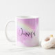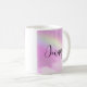 A mug with a beautiful background. A pink pastel sky with fluffy clouds and a lemon coloured rainbow. Magical and whimsical design.