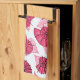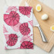Pink snails kitchen towel with a pattern created from an ink drawing of abstract snail shells with decorative white dots in from of leaves.