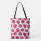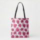 Pink snails tote bag with a pattern created from an ink drawing of abstract snail shells with decorative white dots in from of leaves.