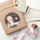 Pink Snowflake baby shower stickers with adorable baby girl wearing a cute pink snow outfit and hat on a rustic snowflake background. You can add text to personalise these cute winter baby shower stickers.