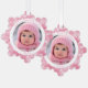 Pink Snowflake Baby's First Christmas Photo Tree Decoration Card