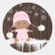 Pink Snowflake Ethnic Girl Baby Shower Stickers