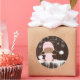 Pink Snowflake baby shower stickers with adorable ethnic baby girl wearing a cute pink snow outfit and hat on a rustic snowflake background. You can add text to personalise these cute winter baby shower stickers.
