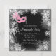Elegant white snowflake and black background and pink feather mask masquerade party invitations. The pretty pink snowflake masquerade party invitation is easily customised for your event by simply choosing the "Customise it!" button to begin adding your event details, font style, font size & colour, and wording. Please note - all of the card and invitation designs you will find on Zazzle are printed graphics with no actual jewels, bows, raised, embossed, or added parts or pieces.