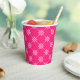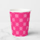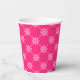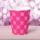 Paper cups featuring white snowflakes in a square diagonal pattern against a pink background. Perfect for a fun wintry / Christmas holiday party.