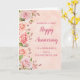 Happy wedding anniversary card for son and daughter in law with elegant pink watercolor roses and spring greenery, with a faux rose gold pattern.