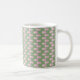 This mug has a mid-century modern design of pink ovals connected by pink lines with off-white circles all on a field of light green. Want different colours? Message me.