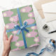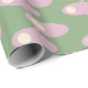 This wrapping paper has a mid-century modern design of pink ovals connected by pink lines with off-white circles all on a field of light green. Want different colours? Message me.