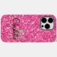 Fun party vibe, pink sparkling glitter Case-Mate iPhone 14 Pro Max Case - text font is customisable and design is transferable-