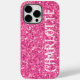 Fun party vibe, pink sparkling glitter iPhone 14 pro max - text is customisable and design is transferable-