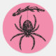 This stylised version of a vintage spider illustration has a pink/black colour scheme.