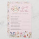 Delight your guests with our Blush Pink Wildflower Bridal Tea Party Spill the Tea Game. Adorned with stunning hand-painted watercolor florals in deep purple, dusty blue, and blush pink with sage greenery, these game cards beautifully complement cream and gold floral teacups and saucers on a blush pink background, with a cute pink butterfly adding charm. Each element is designed to create a cohesive and enchanting atmosphere, ensuring your bridal tea party is both fun and elegant.